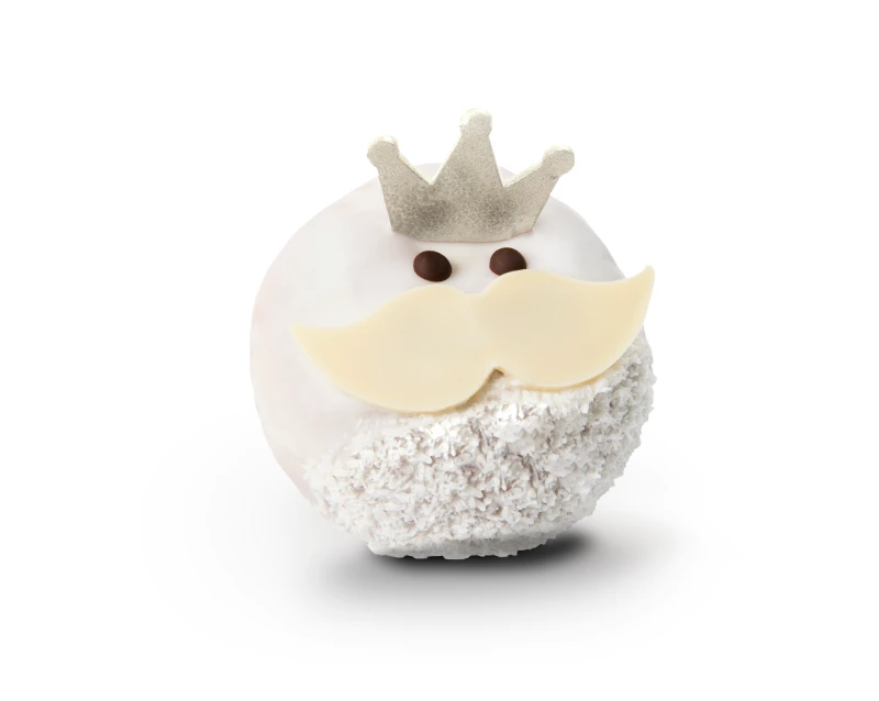 Melchor es el de barba de coco. Está bañado en choco blanco y relleno de dulce chocolate blanco. Su corona es en base chocolate blanco y el bigote es de choco blanco.
