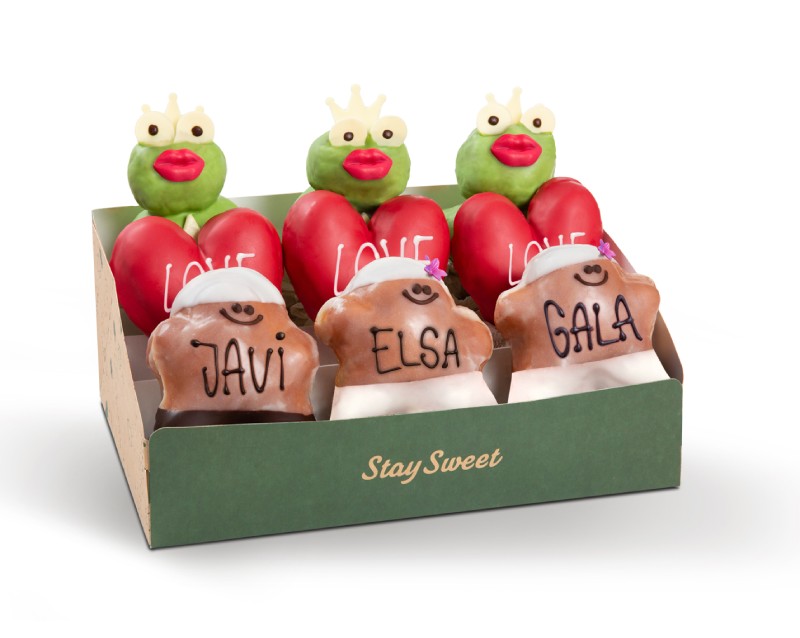 Tú decides, para parejas o solteros, perfecto para disfrutar en una cena de parejas con amigos. Tres loves rellenos de nutty, tres ranas rellenas de nutty blanca, 2 boldugirl y 1 bolduman original.