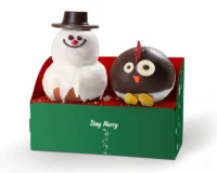 Snowman del polo norte, hecho de masa de berlina Boldú y relleno de nutty blanca.